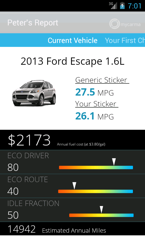 The MyCarma - OpenXC - Personal Fuel Economy Label answers those exact questions. It will also help you identify which new Ford vehicle best fits those personal driving habits.